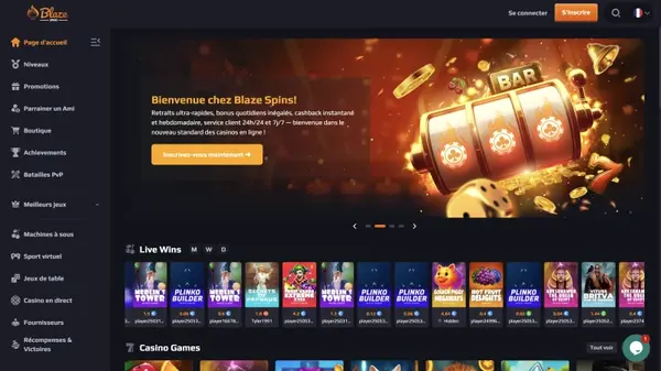 Pour les joueurs axés sur les rouleaux, les machines à sous BlazeSpins sont faciles à trouver via l’onglet Machines à sous et les filtres par fournisseur. Si vous recherchez une liste plus ciblée, la page catégorie machines à sous du casino BlazeSpins vous aide à accéder aux titres tendance sans faire défiler tout le lobby.