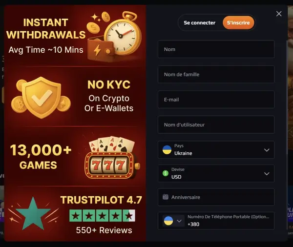 Nous prenons en charge des méthodes de paiement adaptées au Canada en CAD, y compris les cartes et Interac, ainsi que plusieurs options crypto. Les dépôts sont instantanés pour les méthodes listées, et les retraits dépendent du canal choisi. Pour un traitement plus fluide, assurez-vous que le nom sur votre méthode de paiement correspond aux informations de votre profil.